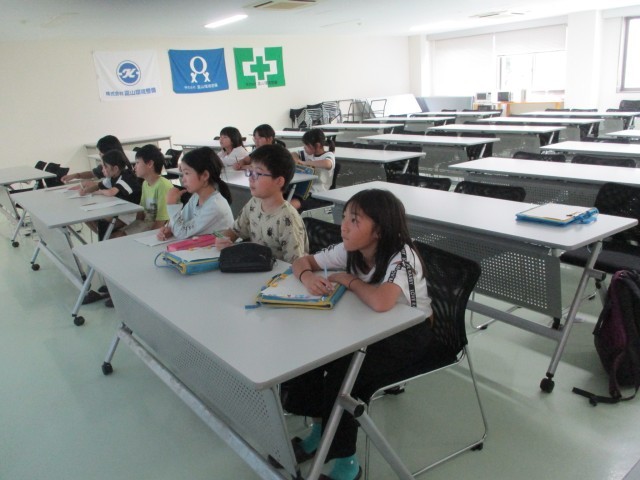 富山環境整備では、職員の方にスライドを使って、仕事内容やリサイクルについて説明していだきました。1日で出るごみの量について質問したり、従業員の方の仕事に対する思いを聞いての感想を述べたりしていました。