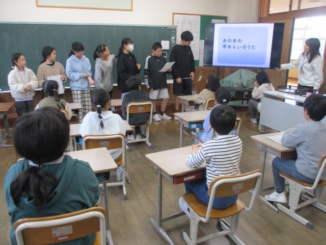 1・2年生は「手でいろんな場所を触っているから、きれいにするために給食前に机を拭くんだね」「これから手洗い気を付けなきゃ」と話す姿がありました。