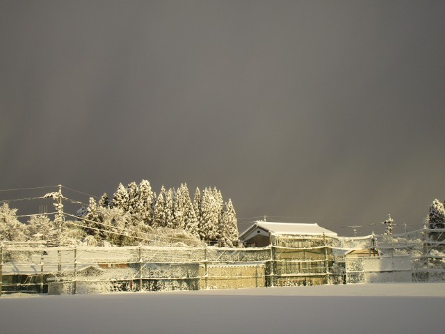 グラウンドが朝の太陽に照らされていました。