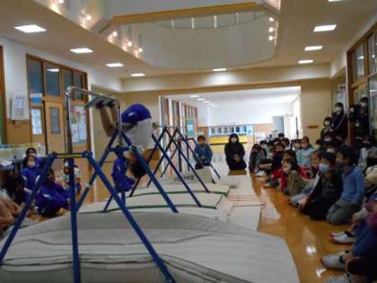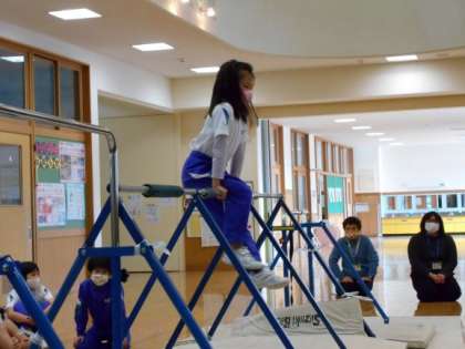 3年生は、これまで体育の時間に練習してきた鉄棒の技を披露する「鉄棒パーティー」を開きました。たくさんのお客さんに見守られながら、 一生懸命がんばりました。