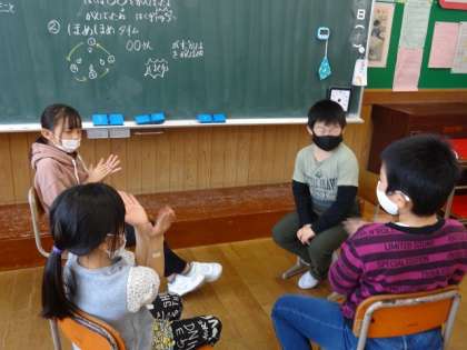 終業式の後の学活で、2学期がんばったことを「がんばったよ」タイム、「ほめほめ」タイム、「2年生がんばったね」タイムで、発表し合いました。「がんばったよ」タイムでは、2人ペアになり、自分のがんばったことを伝え合い、互いに拍手をしました。「ほめほめ」タイムでは、4人グループになり、1人の友達に残り3人ががんばったことやすごいなと思ったことを伝え、みんなで拍手しました。