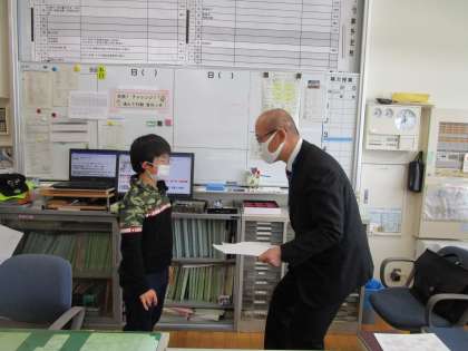 今日は、校長先生や学校におられる担任をしていただいた先生方に文集に入れるメッセージを書いてもらうようにお願いにいきました。