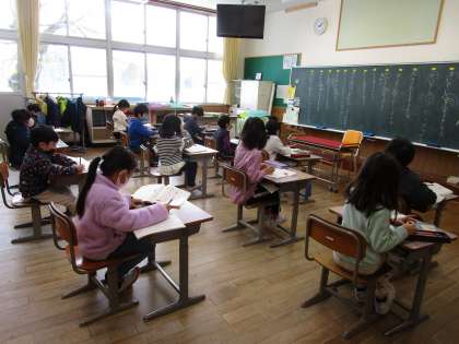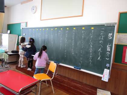 「『たこ』のあいだに『い』をいれて、『たいこ』」のように、言葉遊びを楽しむ学習をしました。自分で考えた「へんしん」を発表し合い確かめました。