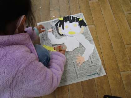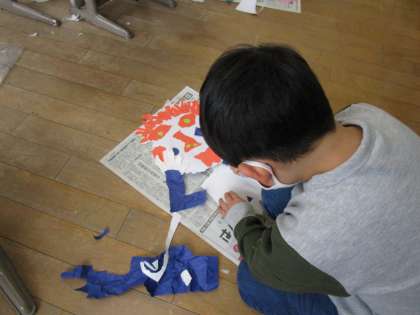 「○○している自分」をテーマに、紙版画に取り組んでいます。目の向き、腕の曲がり等を工夫しながら、版作りに取り組んでいます。