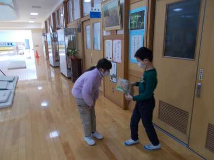 外国語では、案内する側とされる側に別れて、英語で話しながら校内を探検しました。