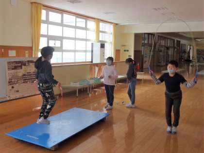 2月15日に縄跳び大会が行われます。2年生も、大会に向けて休み時間に熱心に練習中。ジャンピングボードを使って二重跳びが何回もできるようになった友達に、「すごい!」と声を掛け合う姿も見られます。大会本番は、自分の目当てを達成できるよう、みんながんばっています。