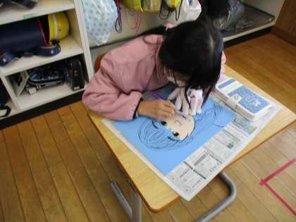 3学期に入ってから、一生懸命掘り進めていた版画が今日仕上がりました。どの作品も個性的で、素晴らしかったです。12日の学習参観では、ぜひご覧ください。