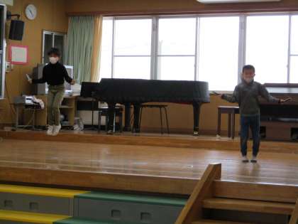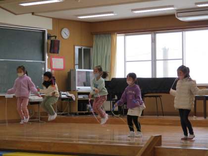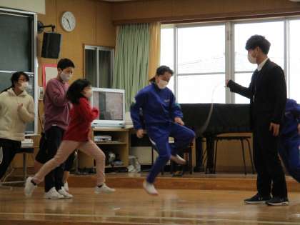 前半は、縄跳びや大縄、狂言などがあり、とても盛り上がりました。