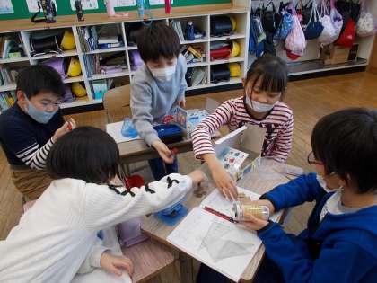 生活科「すてきな3年生になろう」の学習で、3年生が理科で磁石の学習をしているところを見学させてもらいました。どんな金属が磁石に付くかを予想して話し合ったり、実際に磁石に付くかどうか実験をしたりする様子を見学させてもらった2年生。「理科って考えたことを本当にそうか実験する勉強で、楽しそう」「予想や分かったことをしっかりノートに書いていてすごい」「発表している人の目を見て聞いていてさすがだな」など3年生へのあこがれと、3年生になることへの期待をいっそう高めていました。