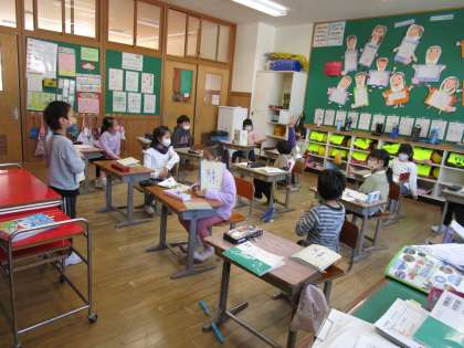 国語科の学習「これはなんでしょう」では、クイズ形式で出題したり答えたりしました。色や形、はたらき、様子などをノートに書き出し、ヒントの順番も考えました。