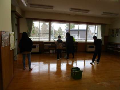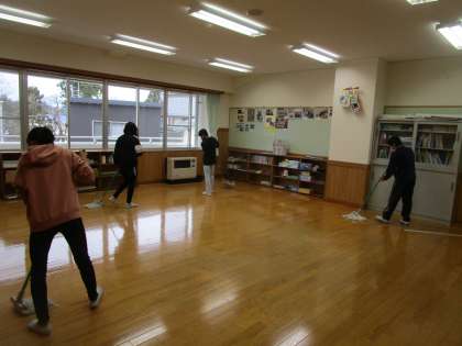 今日は、教室のワックスがけをしました。いつも子供たちは、机などを出し、水拭きをするだけでしたが、1年間使った教室を子供がワックスがけまで行いました。子供たちは、ぴかぴかになった床を見て、うれしそうでした。その姿が、一生懸命で頼もしく感じました。