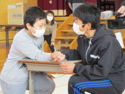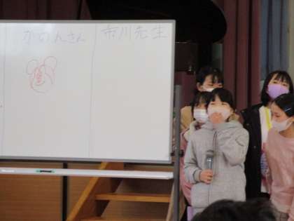 4年生は、卒業おめでとう集会で「イラスト」「すもう」「なわとび」等、様々な種目で6年生と対決しました。どの対決も盛り上がり、流石の6年生は、4年生に勝ち越していました。