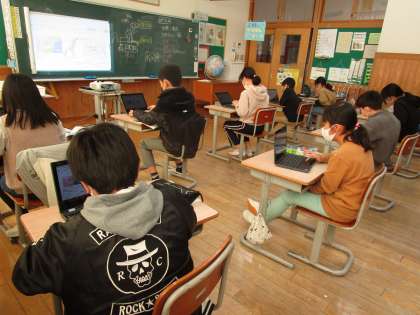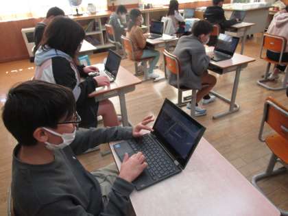 1人1台端末のスプレットシートを用いて、友達と考えを交流しました。少しずつ使い慣れてきています。