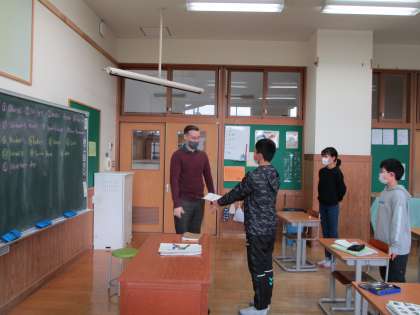今日は、最後の外国語でした。ALTの先生に一年間の感謝の気持ちを届けようと、最後に手紙を渡しました。一年間、ありがとうございました。