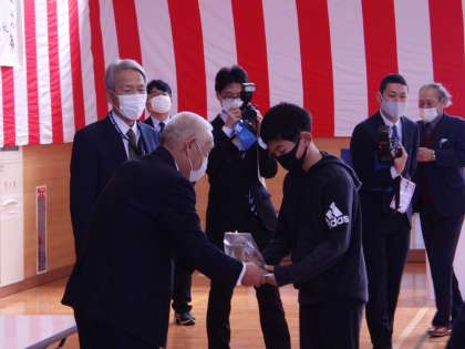 地域の方から、卒業記念品として、ミニ下駄をいただきました。ありがたいお言葉もいただき、一人一人手渡しをしていただきました。気持ちのこもったプレゼント、ありがとうございます。