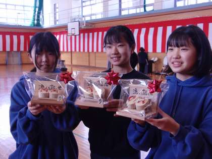 地域の方から、卒業記念品として、ミニ下駄をいただきました。ありがたいお言葉もいただき、一人一人手渡しをしていただきました。気持ちのこもったプレゼント、ありがとうございます。