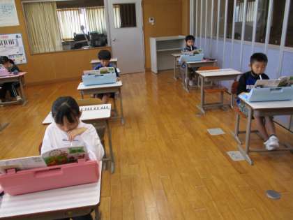 今日は歌を歌ったり、鍵盤ハーモニカの運指を学習していました。みんな上手に弾いていたようです。