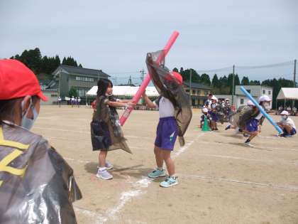 今日は運動会の予行がありました。低学年リレー〜限界突破〜では、衣装を着て一生懸命走りました。本番当日はどちらの団が勝つか楽しみです。