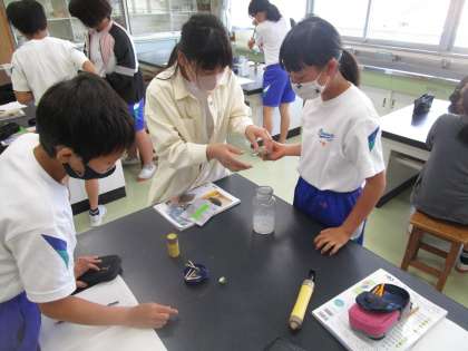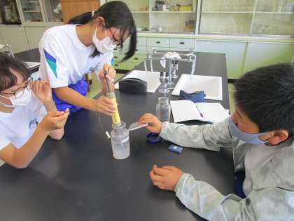 気体検知管を使って、ものを燃やす前と後の、酸素、二酸化炭素の濃度の変化を確認しました。初めて用いた実験道具でしたが、安全に気を付けて使うことができました。
