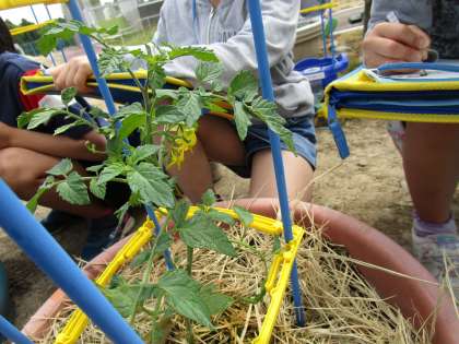 連休明けから、世話を続けている野菜の観察をしました。大きく育っていて安心したり、ジャガイモやスイカの茎や葉に、毛が生えているのはなぜだろうと疑問に思ったりしています。