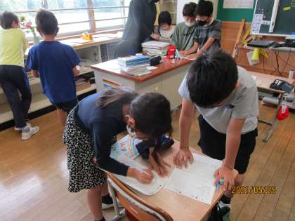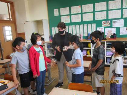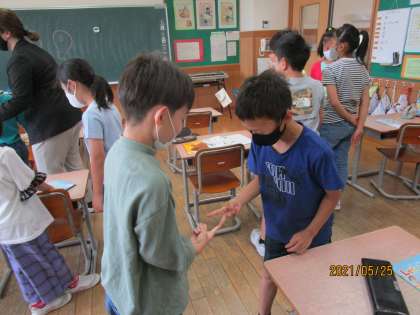 ALTとの授業は3回目。毎回楽しく取り組んでいます。今日も子供たちはじゃんけんをしたり、友達にインタビューしたりしながら、外国語に親しんでいました。