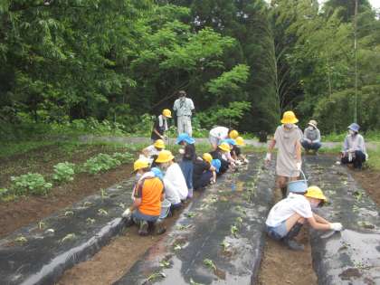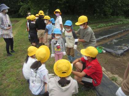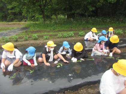 今日は5年生の子供たちが、音川保育所の年長さんたちと一緒にさつまいもの苗を植えました。5年生が年長さんに植え方を教えながら、楽しく植えることができました。最初は緊張していた年長さんたちも、5年生の子供たちの優しい言葉かけで段々と笑顔になっていきました。おいしいさつまいもができるのが楽しみですね。