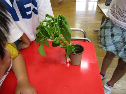 先週の強風で、ピーマンの茎が折れてしまいました。かわいい実が3個もできていたのに、残念です。とりあえず、植え替えますが、この小さな実も冷凍保存し、「ピザ」作りを目指します。