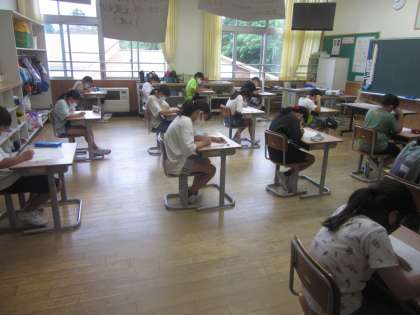 今日は国語の期末テストを行いました。子供たちはいつも以上に集中して文章を読んでいました。