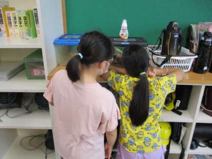 普段、蛾を見ると、「うわっ」と顔をしかめる子供も、自分たちで育てから蛾には「かわいい」「飛べるかな」と愛着をもって見ていました。飛び立ったときは、みんなで歓声をあげて見送りました。セスジスズメ、元気でね。