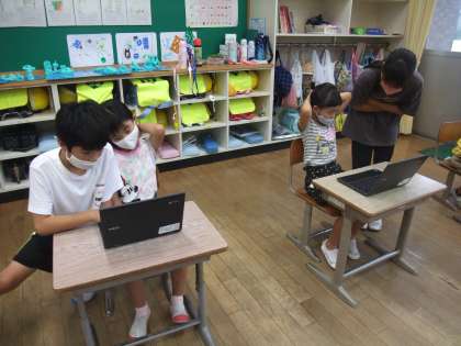今日は6年生さんにアンケートの答え方を教えてもらったり、2年生さんに古代米のおにぎりをプレゼントしてもらったりしました。お兄さんお姉さんにいつも優しくしてもらっています。