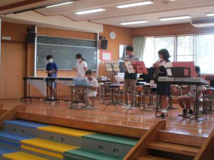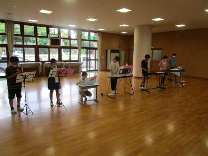 練習してきたラバースコンチェルトの合奏を発表しました。違うパートの楽器の音色を聴きながら演奏することができました。