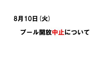 8月10日(火)プール開放中止について