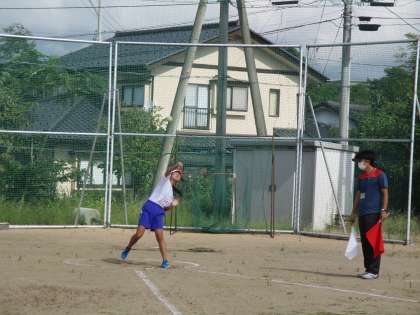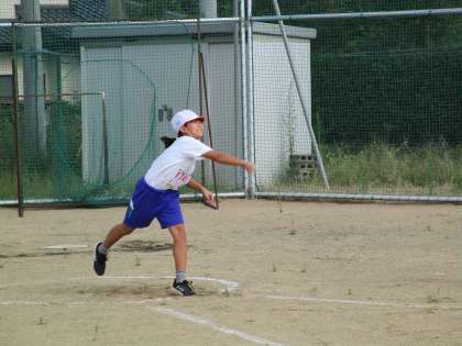 ソフトボール投げでは、肩を大きく使って投げることを意識しました。記録を伸ばそうと、真剣に競技に取り組んでいます。
