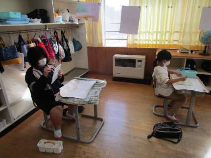 6年生は校舎の中でお気に入りの場所の絵を描いています。薄い色からどんどん色を重ねていくことで、水彩の良さを生かしながら仕上げています。