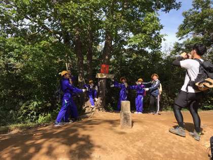 頂上で、班ごとの記念撮影中です。