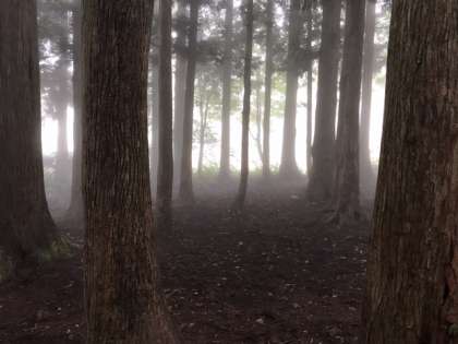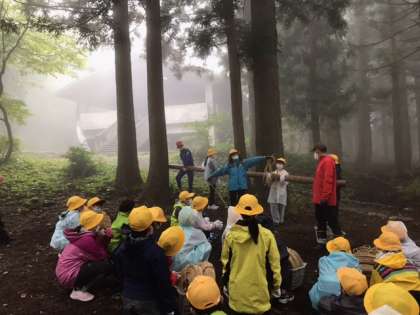 霧の中、森の遊び場づくり、スタートしました。