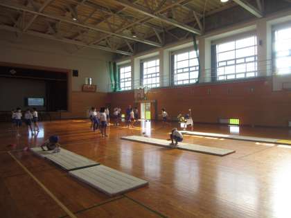 今日は5、6年生でマット運動の発表会を行いました。技を組み合わせて、連続技に挑戦しました。ハンドスプリングやロンダートなどの大技に挑戦した児童もいました。練習の成果を発揮し、綺麗な技を披露することができました。