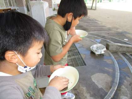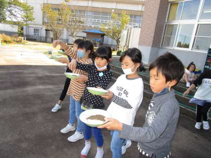 昨日に引き続き、エゴマの選別を行いました。ざるを通して、大きなゴミは取り除きましたが、小さなゴミがなかなか取れず、一人一人が考え工夫しました。結構きれいになりました。もう一息です。