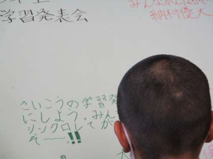 いよいよ明日は学習発表会です。3年生は今日、本番に向けてみんなでメッセージを書きました。「明日は技を成功させて盛り上げる」「友達とシンクロさせる」など、明日に向けた意気込みを書いていました。明日が楽しみですね。