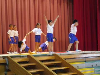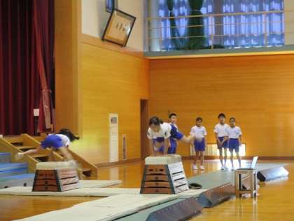 今日はいよいよ本番でした。跳び箱、マット運動、縄跳び、どれをとっても今までで最高の演技になりました。子どもたちは「100点」だった、「最高だった」「楽しかった」と満足した顔で演技を終えていました。