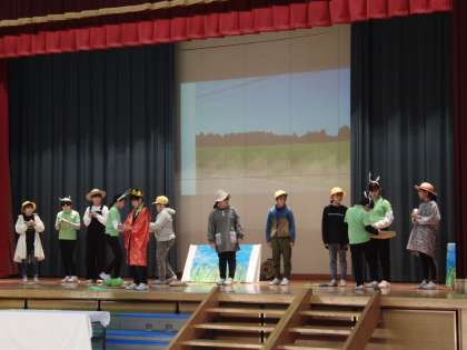 本番では、子供たちは今までで一番の演技を見せてくれました。子供たちは自分たちの課題を見つめながら、日々練習に取り組んできました。自然な演技で見ている人にお米の魅力を伝えるにはどうしたらよいかを考えていました。子供たちは今日の本番につながり、達成感を得られました。