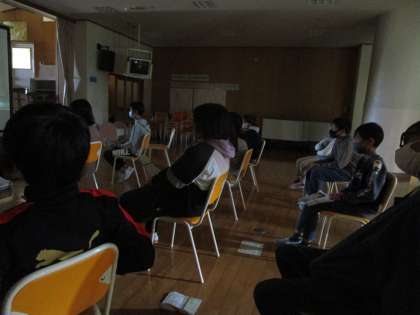多目的教室にて、劇団四季のミュージカルを鑑賞しました。プロの劇団の方の演技を見て、団員の努力や表現の工夫を見付けるなど、貴重な体験となりました。