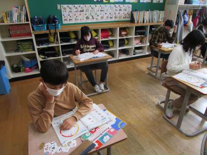 自分たちが食べてる朝食や昼食、夕食は何かを英語で表現しました。また、英文をよく聞いて、何を食べたのか聞き取る学習をしました。