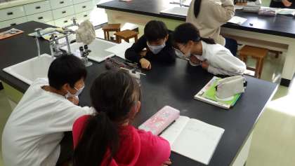 5年生の理科では「もののとけ方」について学習を始めました。今日は食塩を溶かしてみました。子供たちは食塩を入れると水の様子の変化に気付きました。水にもやがかかった様子に子供たちは驚いていました。今日の疑問を大切にしながら、さらに学習を進めていこうと思います。