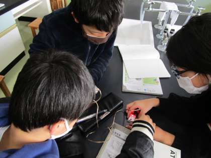 手回し発電機を使って電気をつくり、様々な形で利用する学習をしました。電気を利用する学習を通して、自分たちのくらしの中にも、電気を使っている物がたくさんあることに気が付きました。