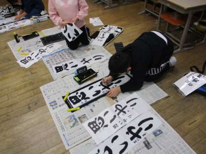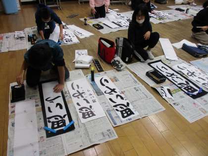今日は初めて大きな用紙を使って書き初め練習をしました。