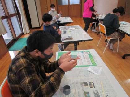 5、6年生はサイエンスカー訪問を通して、化石模型づくりをしました。アンモナイトの化石を見せていただきました。あまり見たことのない化石に興味津々の子供たちでした。石膏を流して型を取りました。2日間置くと化石の模型ができるそうです。明後日の完成を子供たちは楽しみにしています。