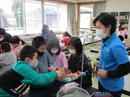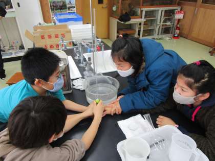4年生は授業で既に学んでいたため、授業で学んだことを思い出しながら実験結果を考えていました。3年生は、まだ習っていないため、実験結果に驚いていました。