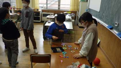 2学期も残りわずかです。今日はお楽しみ会をしました。係の子供たちがお店屋となり、ガチャガチャやボウリング、輪投げなど様々な企画を行いました。みんなそれぞれの企画を順番に回り、楽しむことができました。最後は係のみんなからプレゼントがありました。