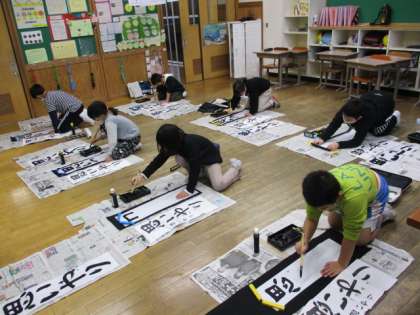 毛筆で行う初めての書初大会でしたが、みんな一画一画丁寧に書き、素晴らしい字に仕上げました。